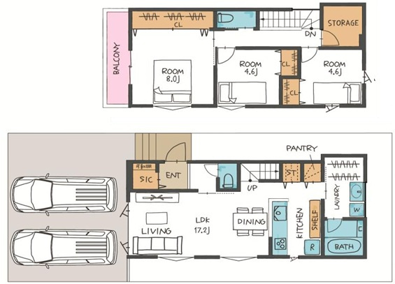 駐車並列2台 耐震等級3 西区学園東町7丁目 2号棟 新築戸建